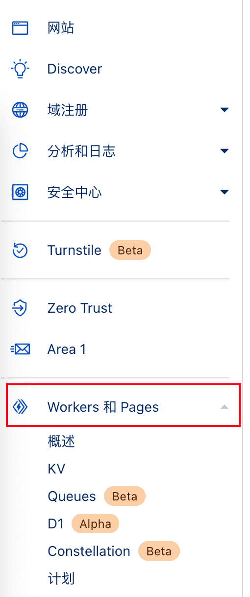 登录Cloudflare控制台,在左侧就可以看见Workers&Pages,点击后选Pages。